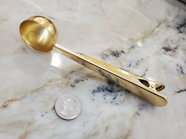 Coffee scoop with coffee bag clip.