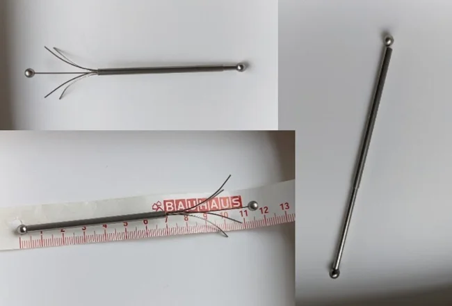 A metal thing, both balls are fastened together. The rod moves. 4 ends are not rounded, but simply cut off