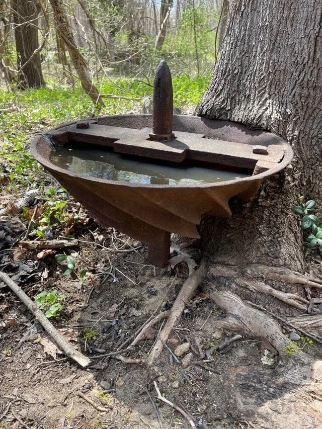 What is that round metal object on the property of a Colonial-era home near New England?