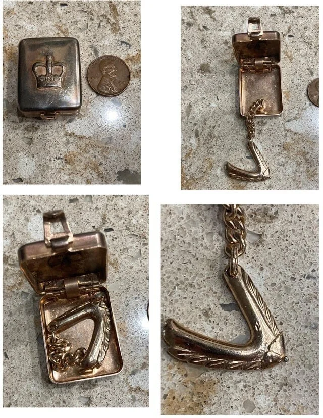 Unusual small silver box with a wing on a chain inside