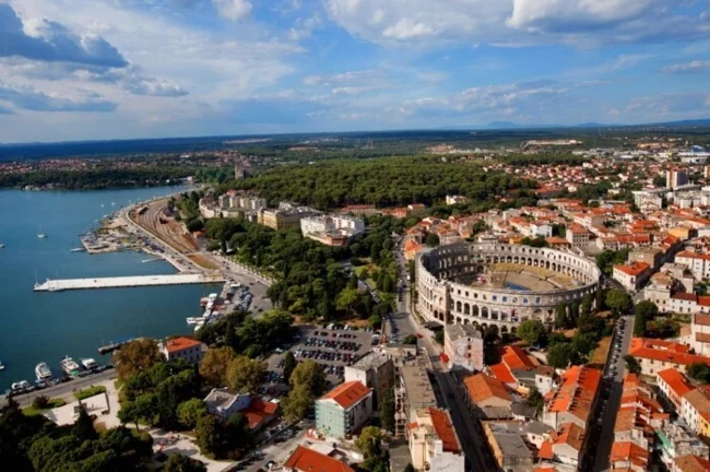 The western city of Pula is located on the Istrian peninsula. Area – 51 km?. The first Greek colony in the Adriatic is today based next to the Brijuni National Park. An amphitheater, a temple, a town hall, a marine casino - these are the things that may interest tourists in Pula. The picturesque city is considered a major seaport. It has developed transport infrastructure in all Croatian directions.