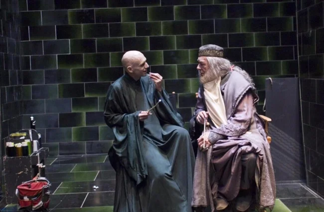 Ralph Fiennes and Michael Gambon on the set of Harry Potter and the Order of the Phoenix (2007).