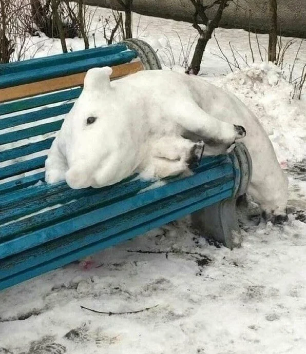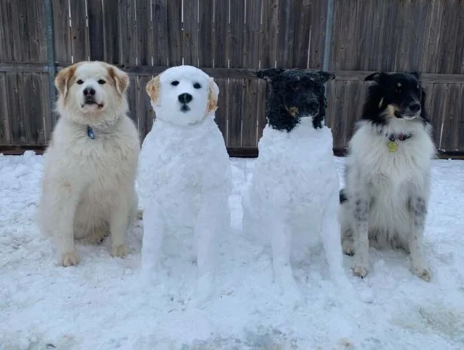 I didn’t even understand that there were dogs made of snow in the middle.