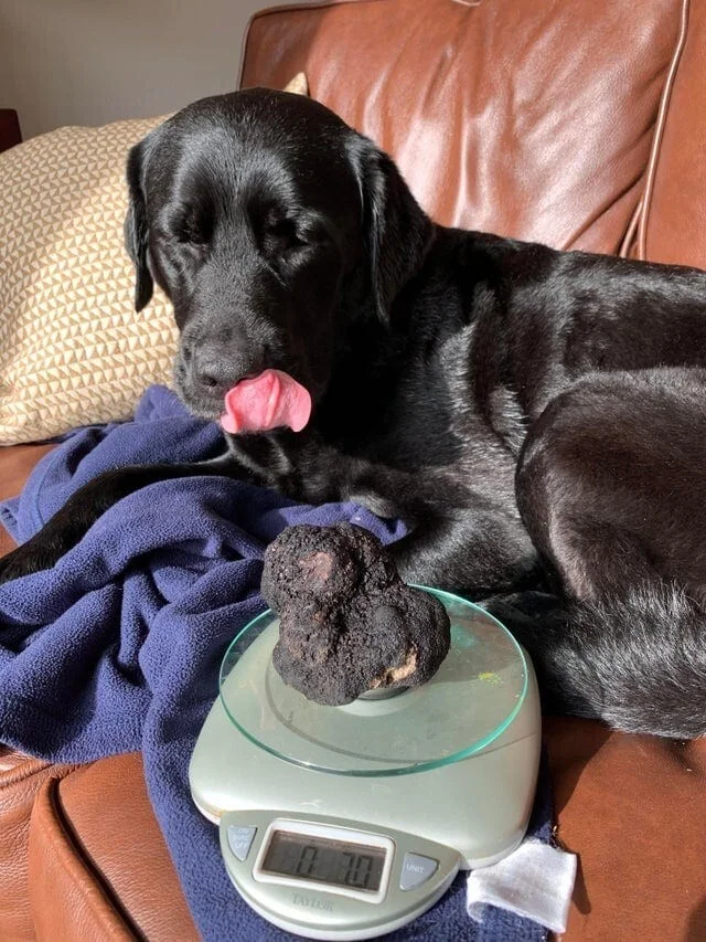 The average weight of an Oregon black truffle ranges from 28 to 56 grams. Today Roux found the perfect truffle weighing almost 200 grams!