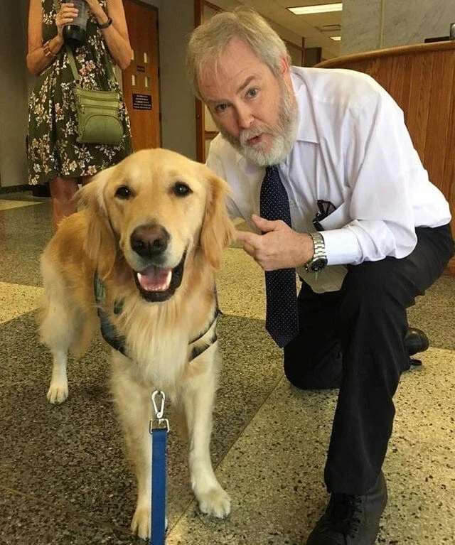 Another therapy dog who works at the airport and makes sure everyone boards the flight in a good mood.