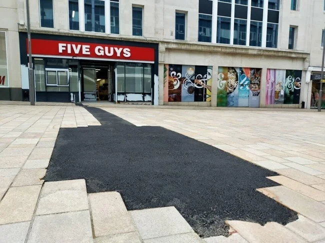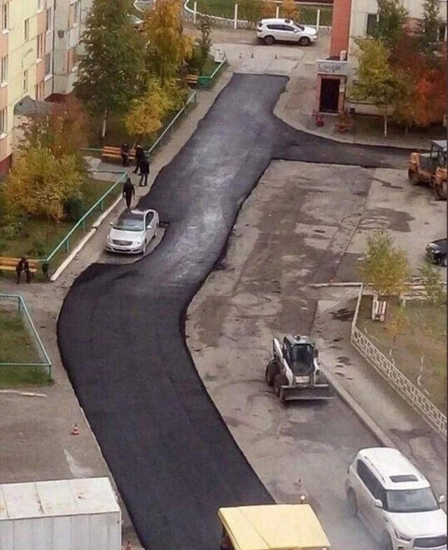 It feels like they brought a roll of asphalt and rolled it out. They’ll take photos of what they put there, roll it back up and take it to another place.