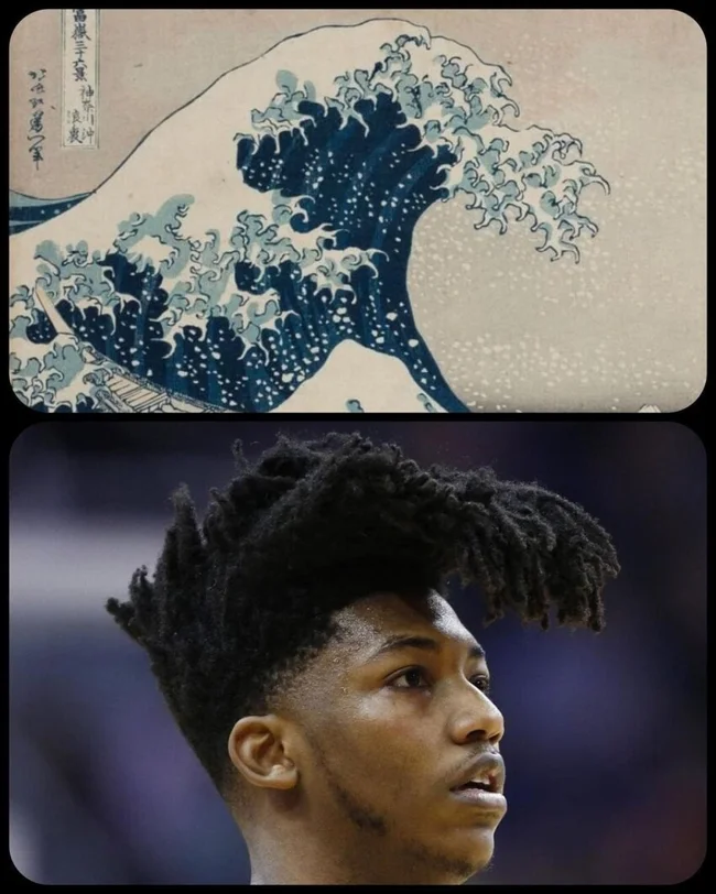 "The Great Wave of Kanagawa" or in this case a big wave on the head of an athlete
