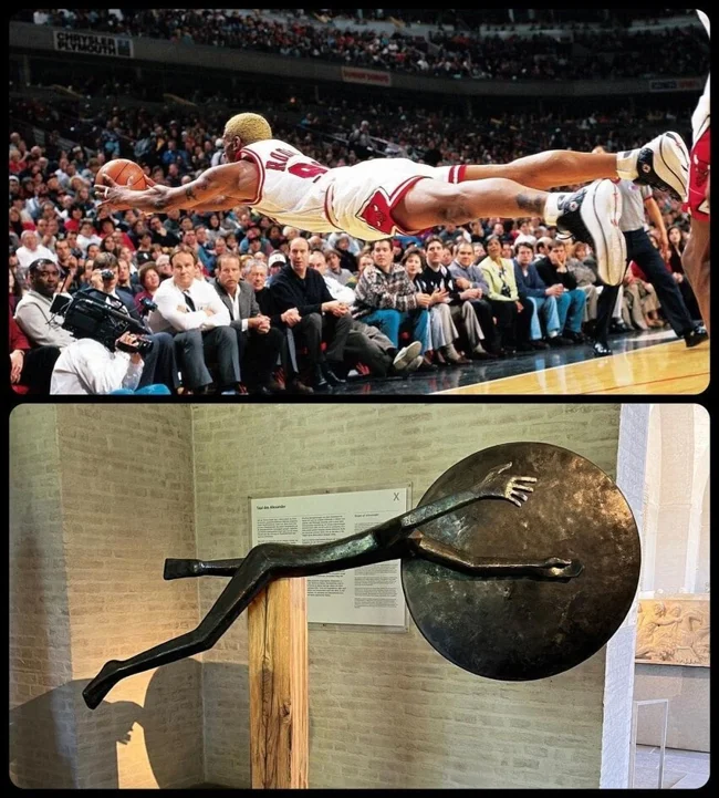 Its author compares photographs of athletes and various matches with objects of art, showing that even such dissimilar things there will be coincidences! Here are some works that prove that this is indeed the case.
