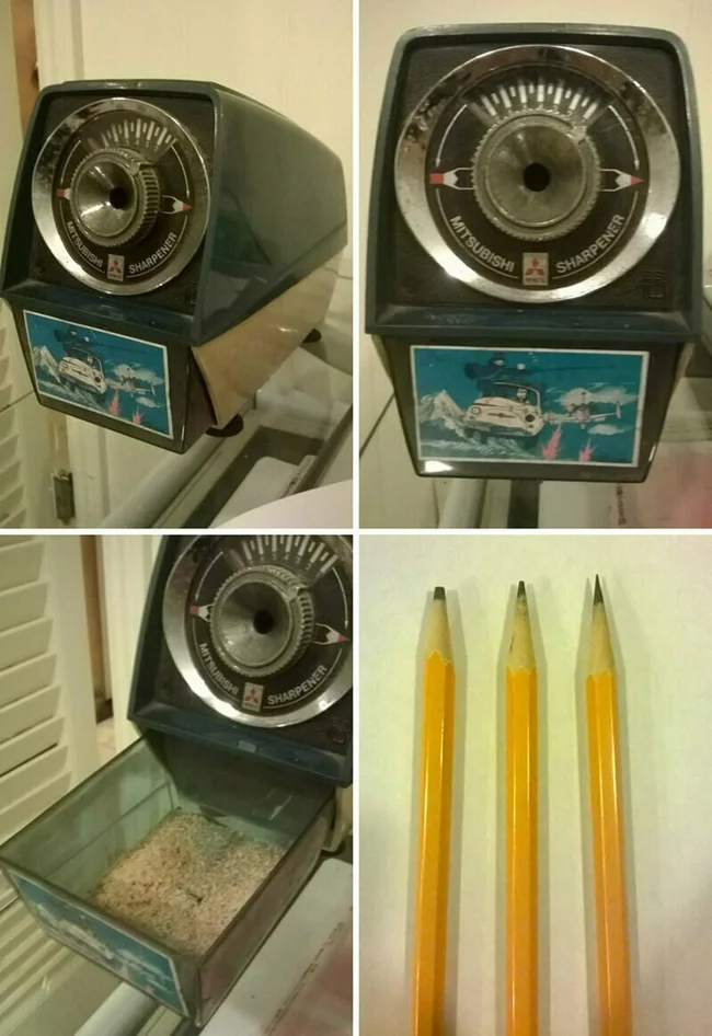 Sharpener from Mitsubishi, on which you can adjust the sharpness of the pencil