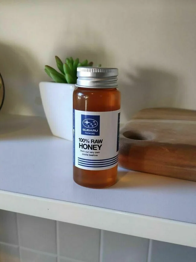 Honey collected on the roof of a Subaru auto center and donated to a customer