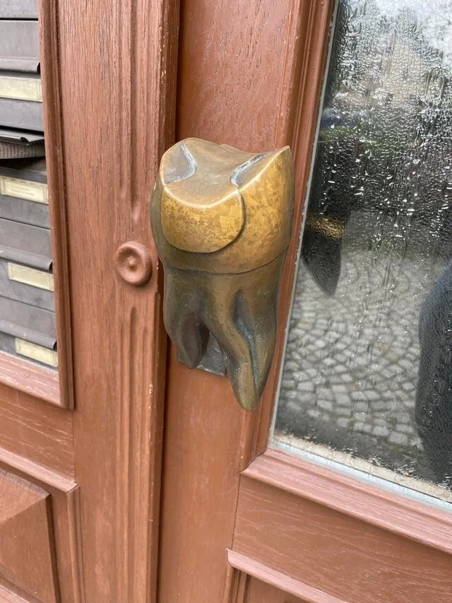 A doorknob in the shape of a tooth that doesn't let you forget where you came from the threshold.