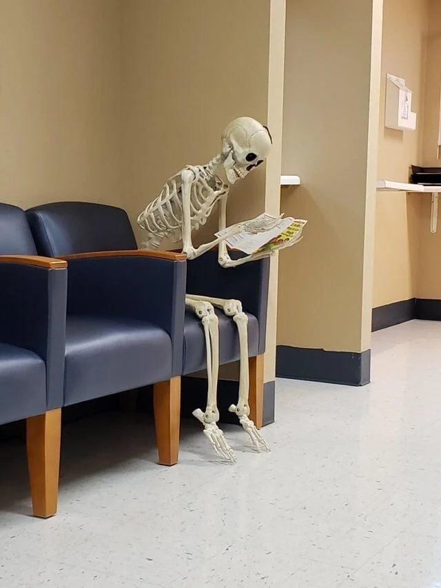 A waiting room with a patient who, apparently, has been waiting for his turn for a long time ![]()
