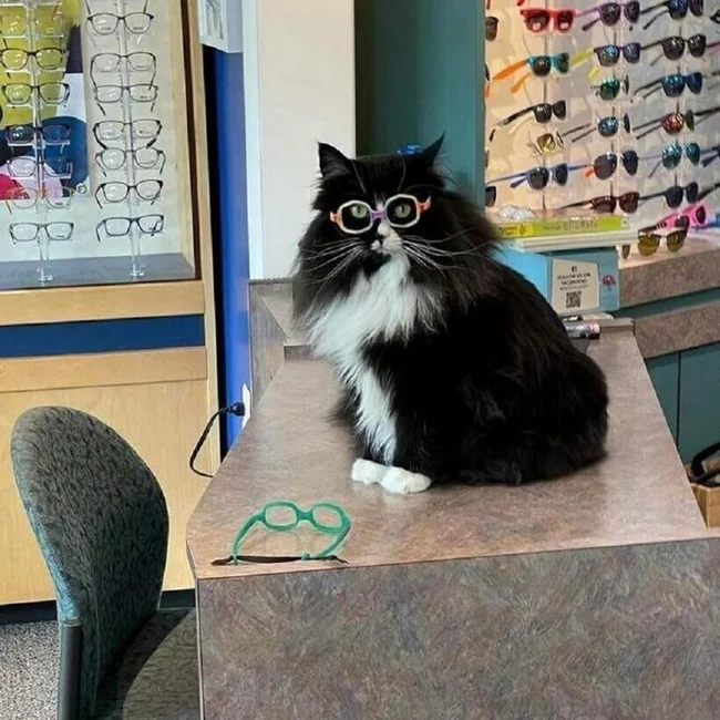 Glasses suit everyone, the main thing is to choose the right frame shape. Animals don’t have to bother themselves with a choice, because everything suits them!