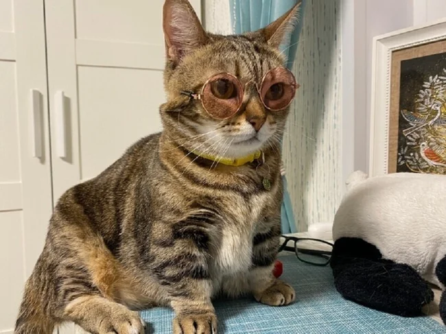 As soon as this cat puts on glasses, he becomes a house psychotherapist and is ready to listen to his owner