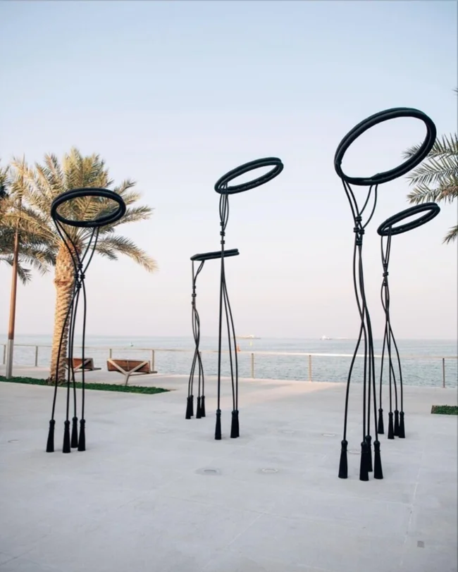 An unusual sculpture can be seen in the vicinity of Lusail. The authorship of this amazing installation belongs to Shuk al-Mana, a local arts minister. The girl depicted part of the traditional men's headdress, which is usually worn in Qatar. In this way, the artist expressed respect for the history and traditions of her country.