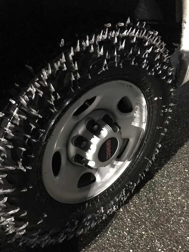 Driving in winter weather caused ice spikes to form around my tires