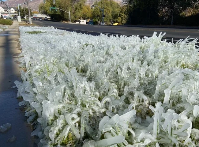 This is what happens if you don't turn off your irrigation system in cold weather.