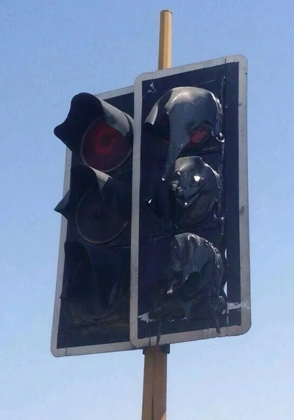 The traffic light could not withstand the summer heat