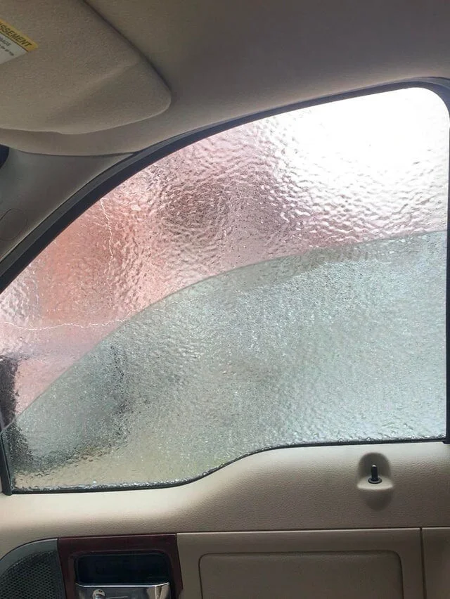When the wind meets freezing rain on the glass of a parked car
