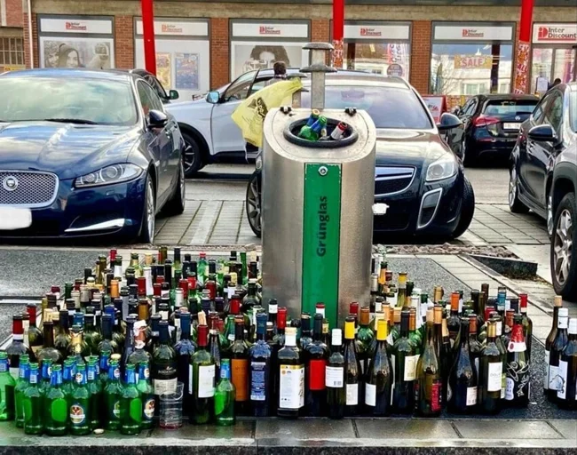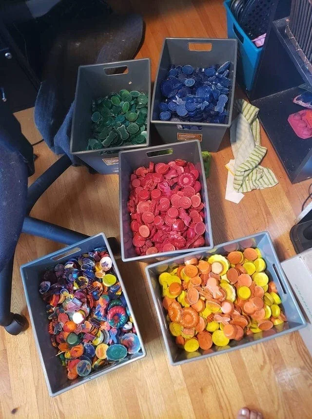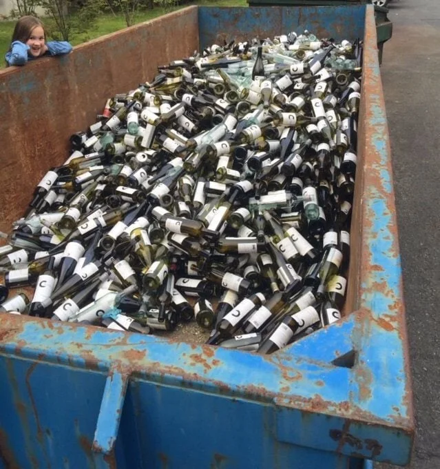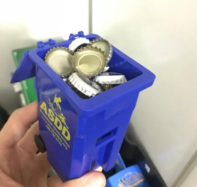 I went to a party, and there was a large container for bottles and an equally small one for caps.