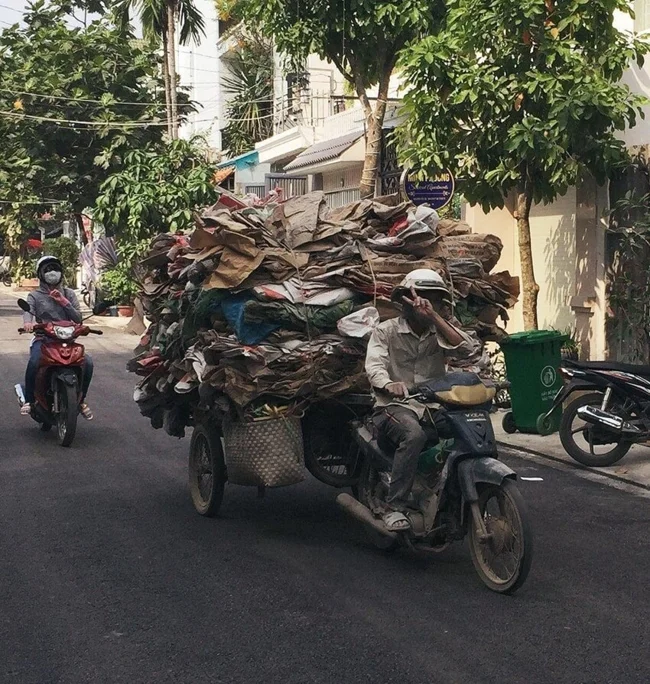 A guy from my neighborhood in Ho Chi Minh City. He makes a living by collecting cardboard for further recycling.
