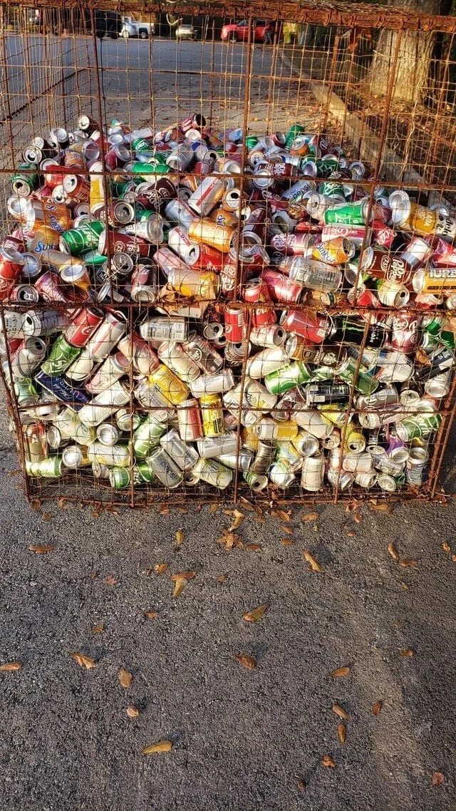My dad and I continue to walk around and collect tin cans, which we then stack in our yard. We recently took them apart and took them to a recycling center and made $160!