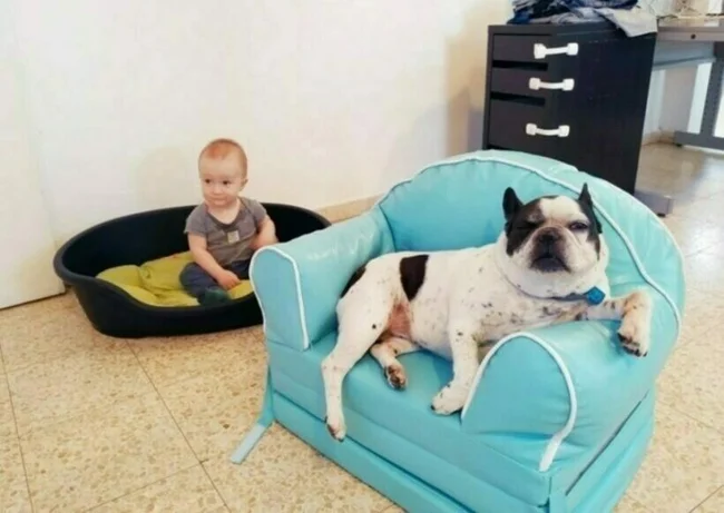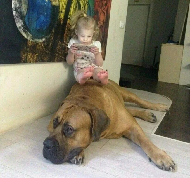 When such a big dog lives with you, it’s more convenient to watch cartoons on a tablet while sitting on it