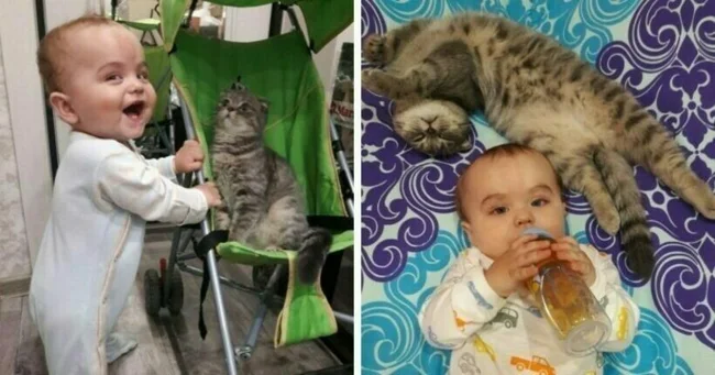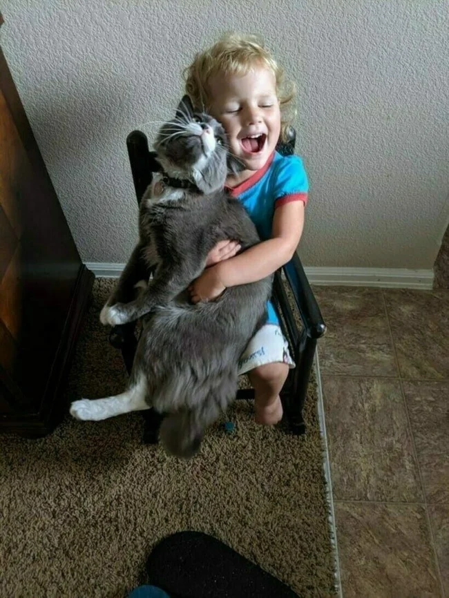 Their love seems to be mutual, which is not often the case with cats with small children.