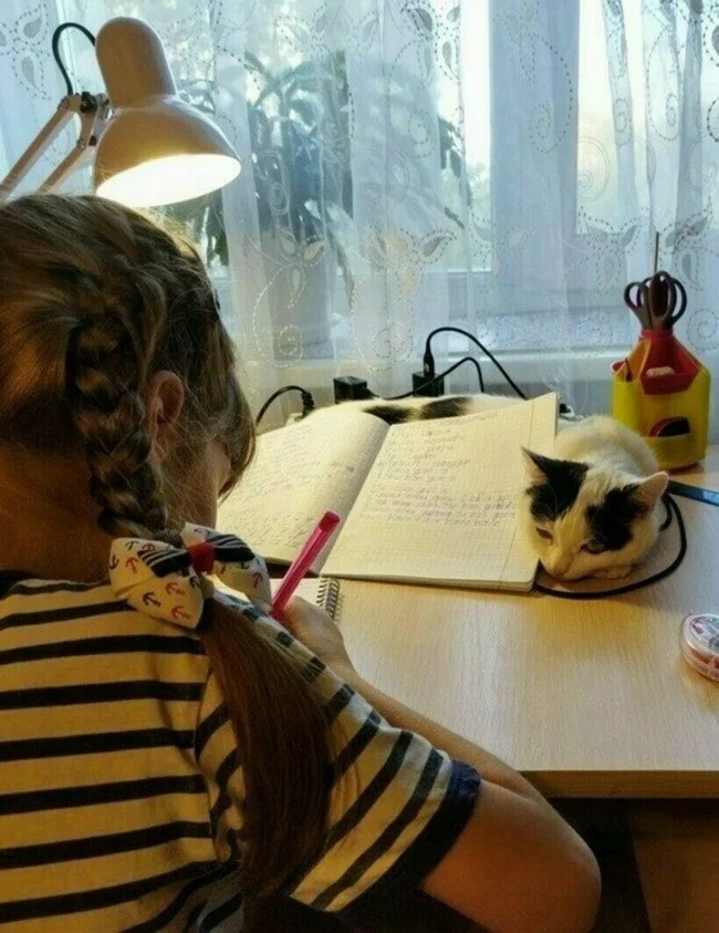 If you don't have a stand for textbooks, you can use a cat