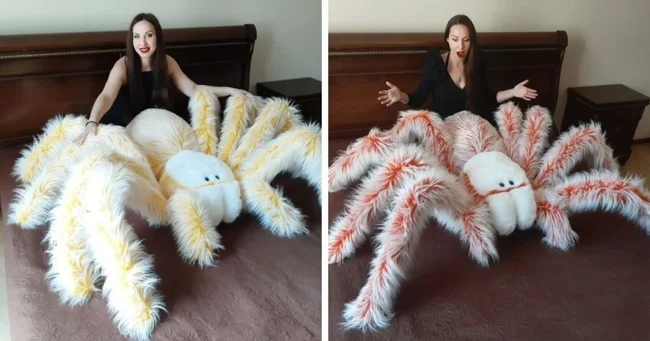 A plush spider can act as a pillow or an ordinary toy. It will evoke only positive emotions and will not scare you at all.