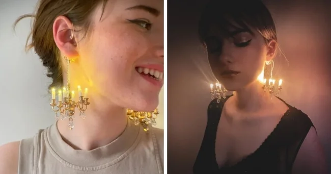 Earrings in the shape of a chandelier with candles - unusual and elegant