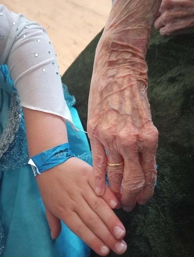 This is what a 45 year old plant looks like compared to grandma. Her mother planted this bush.
