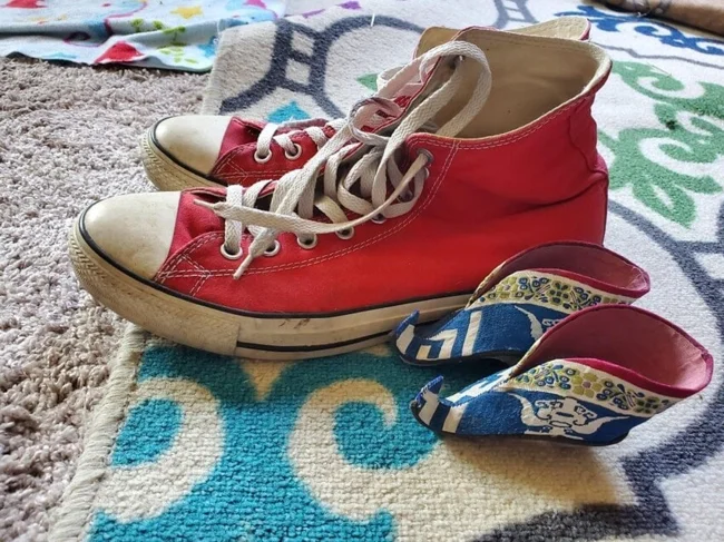 Three-inch (7.62 cm) adult women's fleur-de-lis shoes and regular shoes