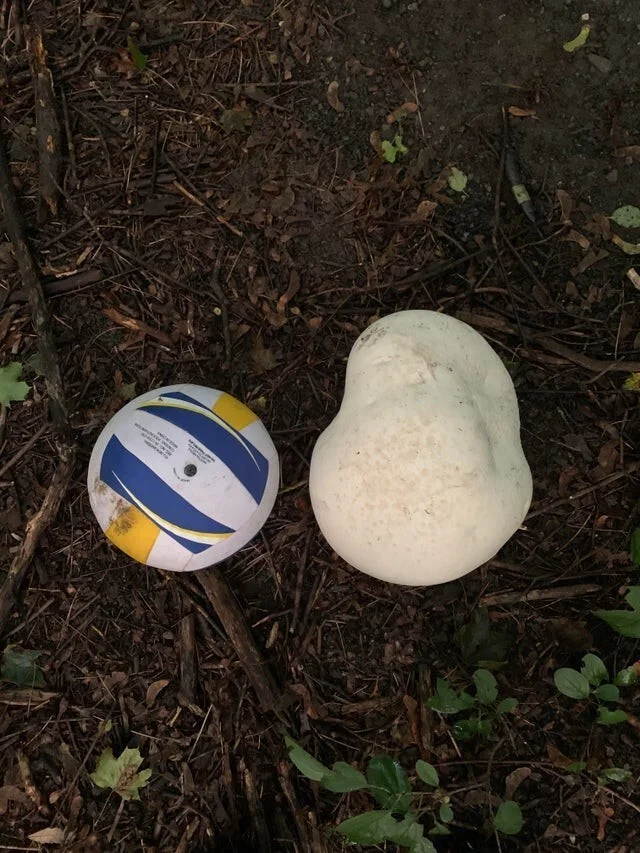 The size of the mushrooms growing in my backyard compared to the size of a volleyball ![]()