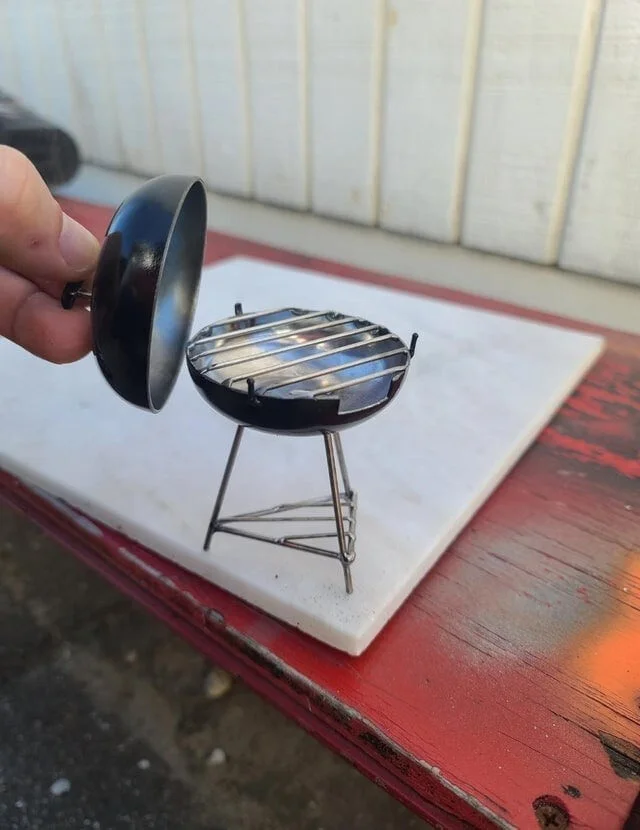 Turned a bicycle bell into a tiny grill. Who wants to try some baby ribs?