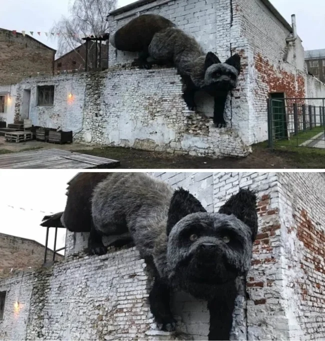 Latvian Academy of Arts student Alexander Marinokha and his father Oleg created a giant and realistic figure of a silver fox. Anyone who stumbles upon this masterpiece of modern art late at night will be unlucky.
