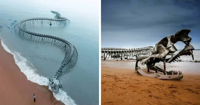 Aluminum skeleton of a huge snake