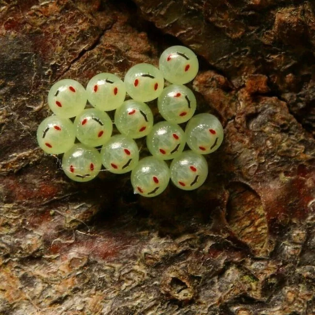 The marbled bug is not particularly cute, but its eggs sometimes look like smiley faces