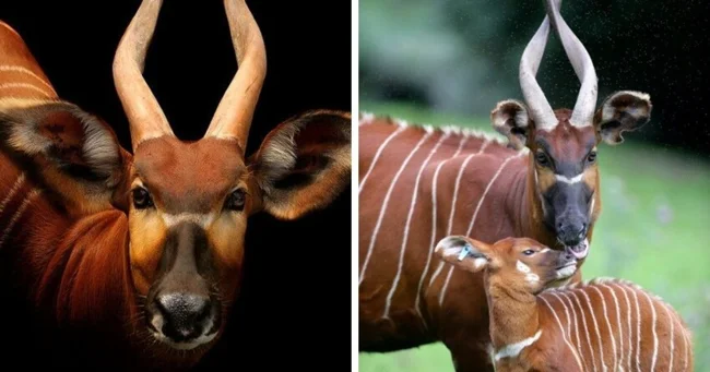 The signature color of the antelopes is easily washed off. Sometimes when it rains, red drops drip from the bongo.
