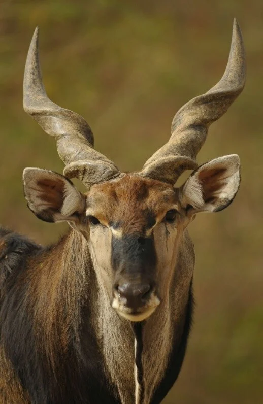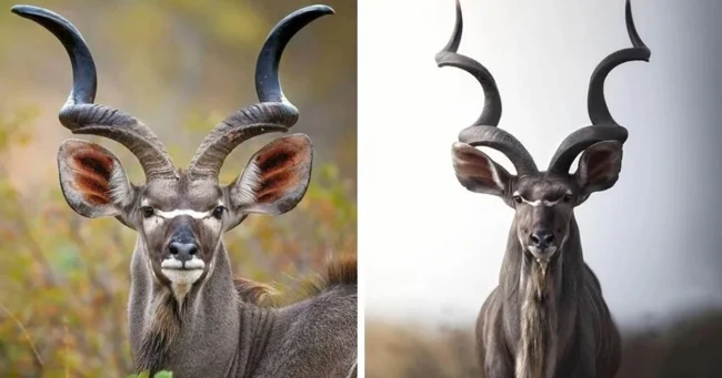 The length of the horns of large kudu can reach almost 2 meters. The number of curls is different. Some males boast 2.5 curls, while others have horns so long that they curl as much as 3 times.