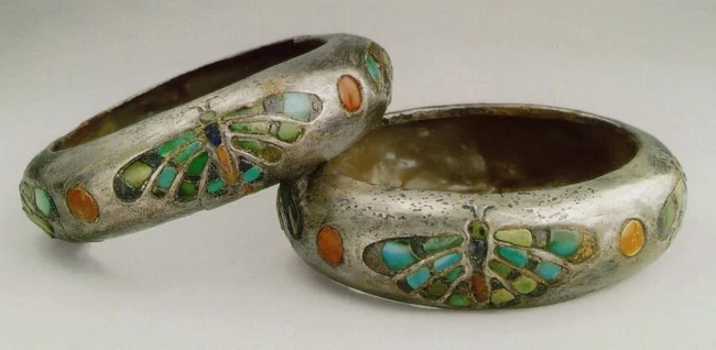 They were discovered in Giza. Made from silver, turquoise, lapis lazuli and carnelian, which were among the most expensive materials of the time.