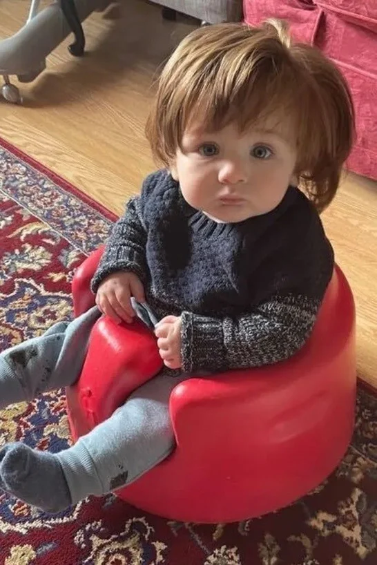 A nine-month-old boy has such a head of hair that passers-by think he's wearing a wig.