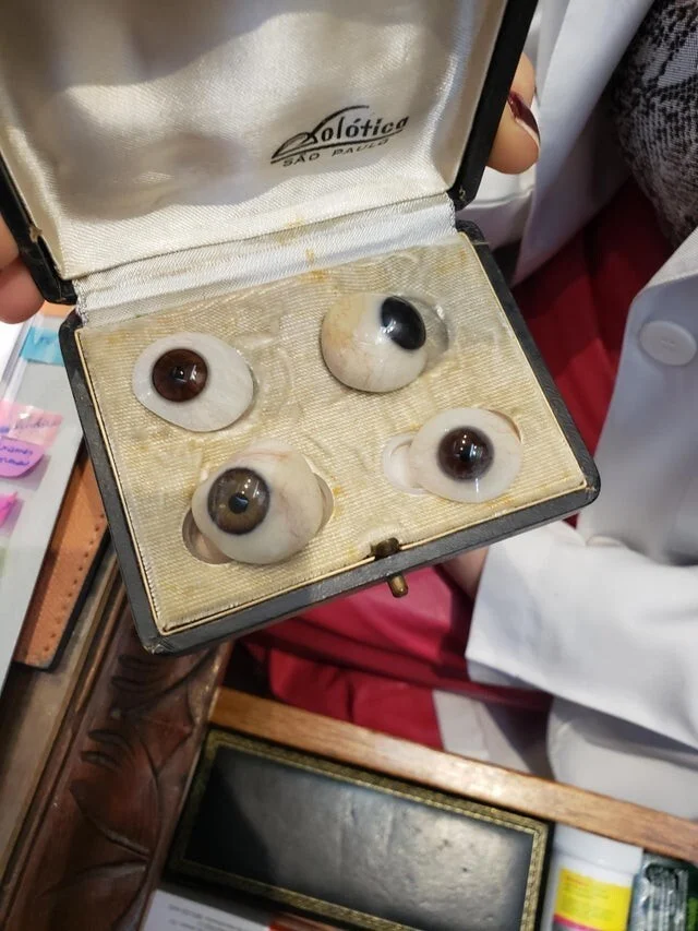 My father was an ophthalmologist and these are the glass prosthetic eyes he showed to patients