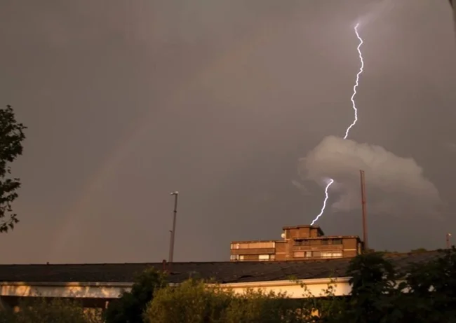 This afternoon in South Africa I took a photo of lightning striking a building through a cloud.