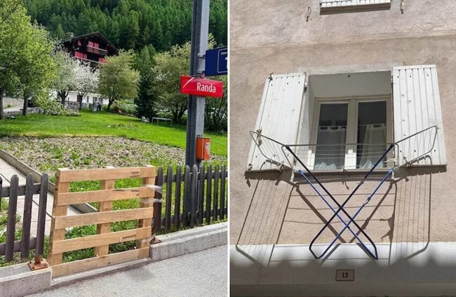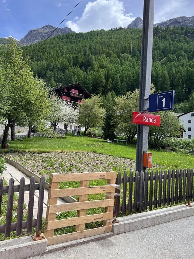 Someone came up with the idea of replacing a broken gate with a wooden pallet, taping it to the fence