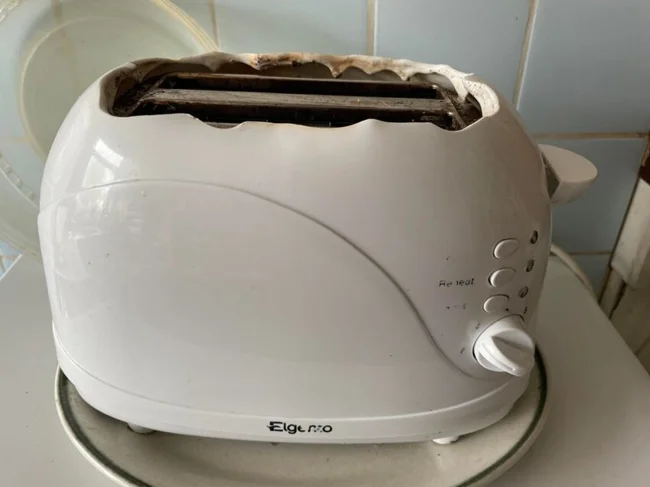 Toaster made of plastic that melts