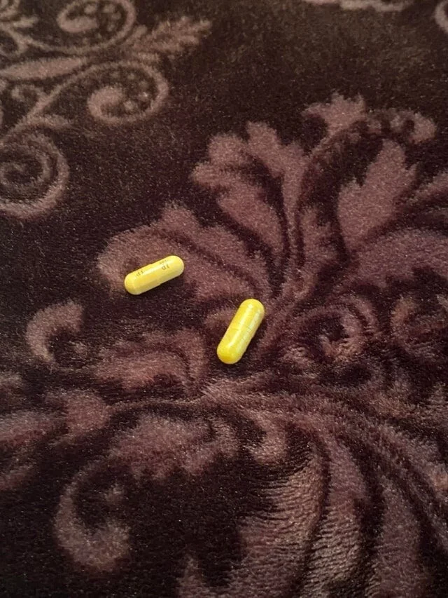Dinosaurs growing in the bathtub look like pills