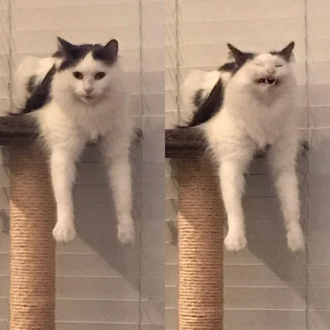 Usually cats in photos look so cool and cute that the owners do nothing but take pictures of them in all poses and states. But cats also have bad moments. Like when they sneeze!