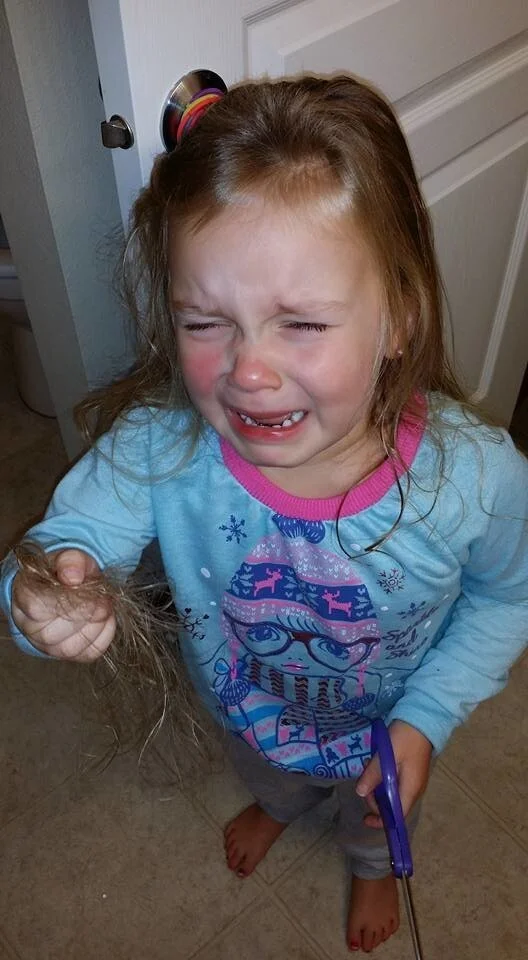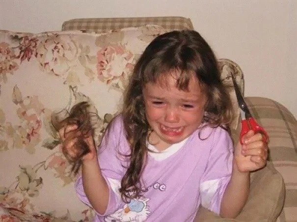 I remember cutting my hair off as a child because it was "in the way of my eyes" and I didn't realize it would leave little prickly hairs.