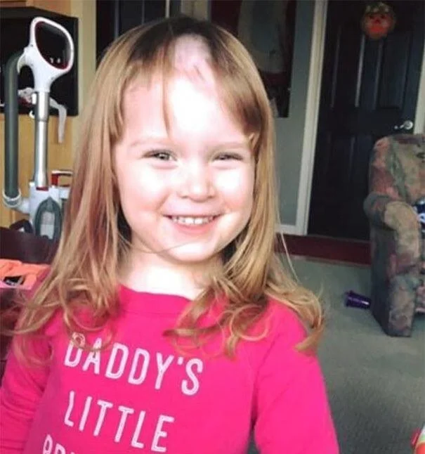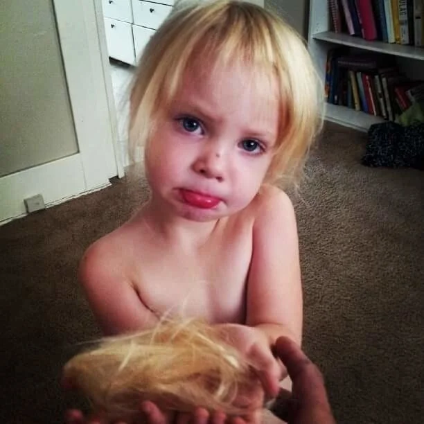 My daughter found scissors and cut her hair. Now she looks like Yolandi